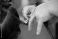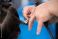 • Ścinanie włosów brzytwą, dłonie fryzjera ścinającego włosy