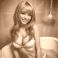 Plakat do Salonu Fryzjerskiego - Piękna kobieta w stroju bikini pozuje w łazience. Kobieta ma kolorowe włosy i makijaż na twarzy.... #662710905