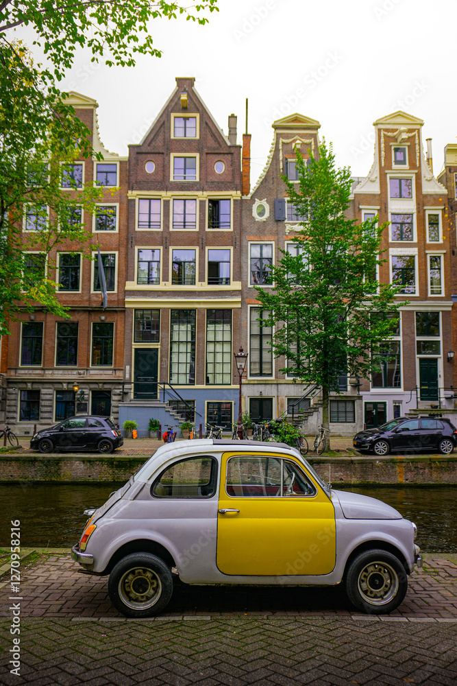 Plakat do Sypialni - Amsterdam's most recognizable car parked by the canal #1270958216