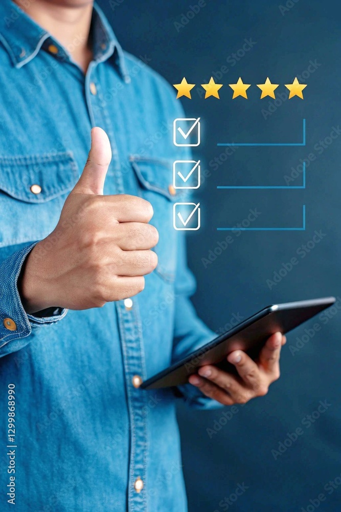 • Business people,or By giving the most or the best satisfaction rating.Customer service satisfaction survey concept customers show satisfaction through the application on the laptop screen.business, aw