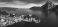 • Austrian most beautiful lakes - Traunsee, aerial view of scenic village peninsola Traunkirchen . aerial drone panoramic view. Salzkammergut, Austria