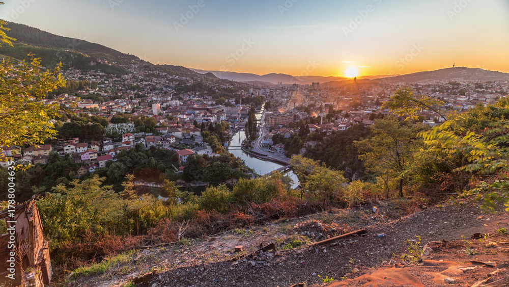 Plakat do Sypialni - Sunset view of Sarajevo from most popular panoramic spot in Sarajevo timelapse. #1788004635