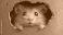 • Cute hamster peeking out of a hole. teal background surface wall texture. The most adorable pet ever. Baby pet