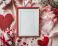 • a well lit photo mockup of an 8x10 red and gold glitter frame blank white inside frame takes up most of the photo flat lay pink and red valentines colored decorations valentines theme wit