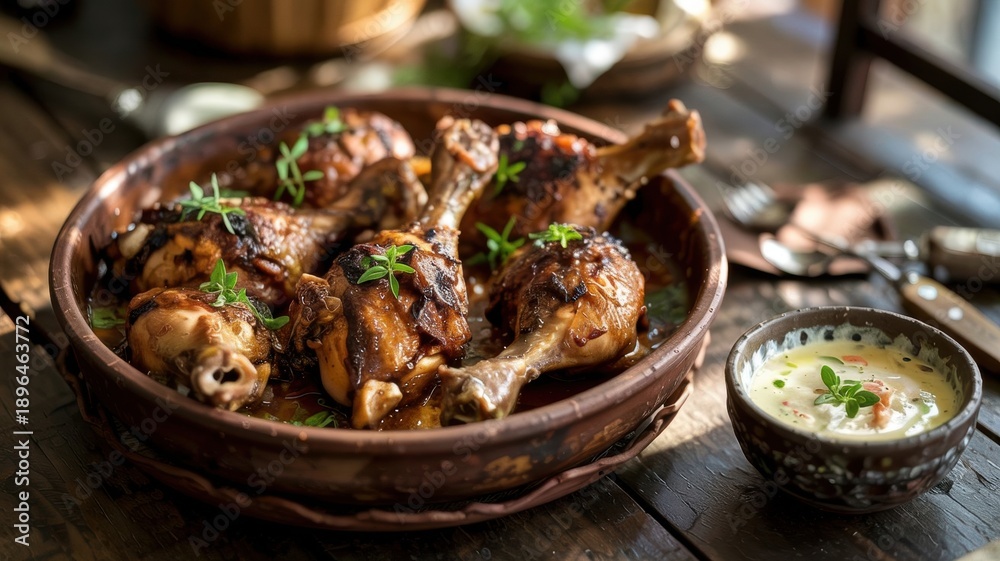 Plakat do Sypialni - A dish of Georgian cuisine. Shkmeruli is one of the most popular and flavorful dishes of Georgian... #1896463772