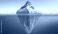 • Photo of an iceberg floating in the ocean, with most of it submerged underwater and only a small portion visible above.