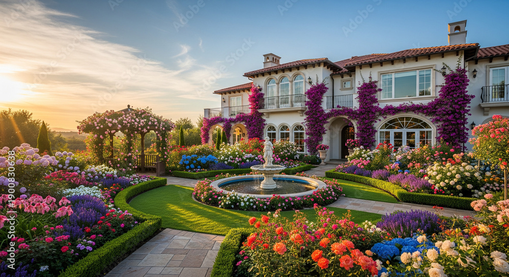 Plakat do Sypialni - villa with the most beautiful flower garden #1900830638