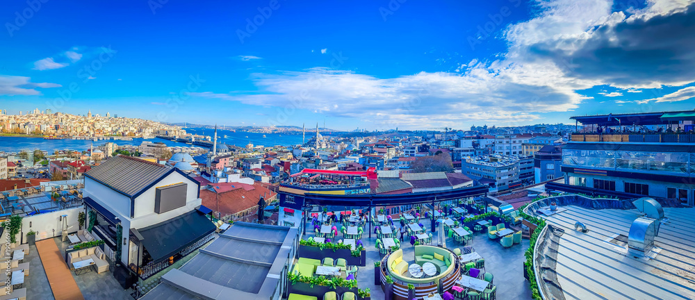 Plakat do Sypialni - citysccape of Istanbul with traditional seaguls, Turkey. Istanbul most iconic lamdmarks, web banner #1906698750