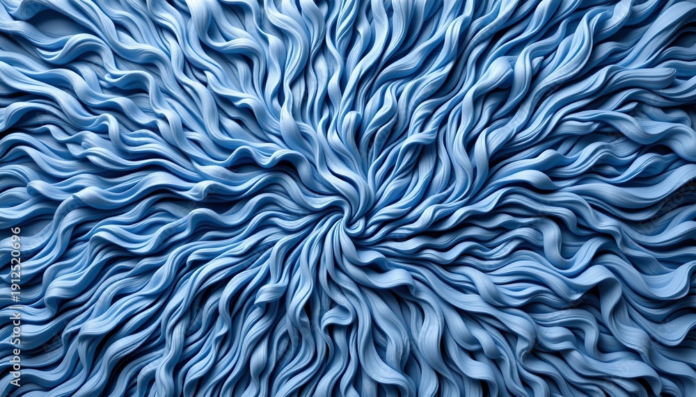 • An intricately folded blue material with an organic, wavy texture that resembles fabric or paper. It occupies most of the frame, filling it from left to right and top to bottom
