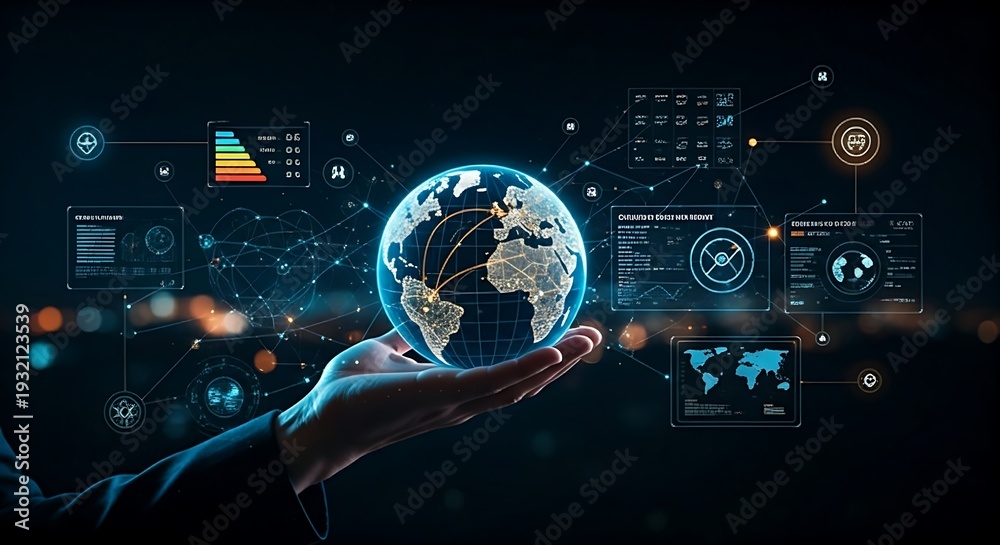 • Sustainable flight route optimization. On a globe, an AI calculates the most fuel-efficient flight path to reduce emissions.