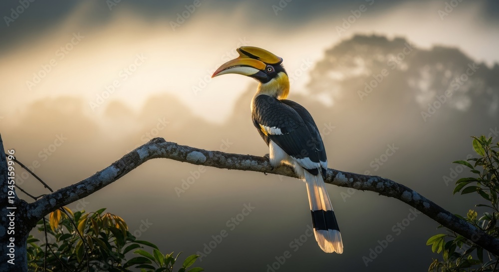 Plakat do Sypialni - A magnificent Rhinoceros Hornbill perched high in the rainforest canopy. Its striking curved... #1945159996