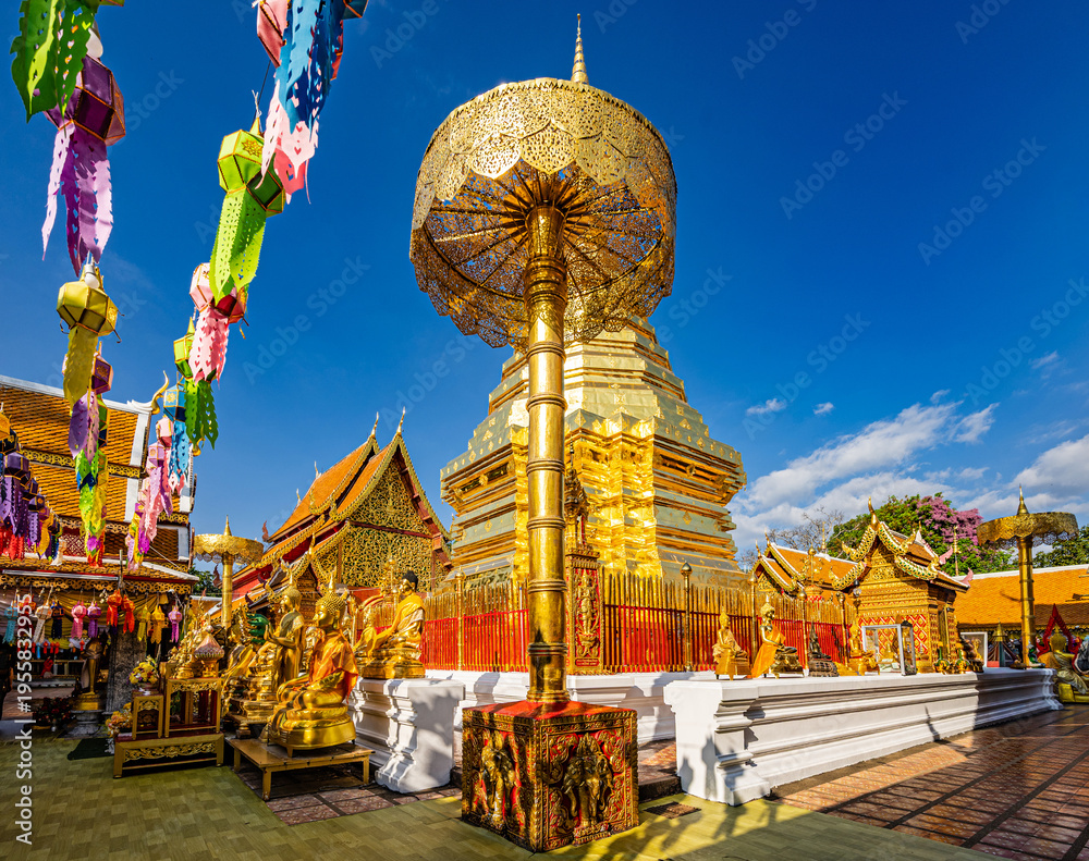 • Chiang Mai, Thailand – Golden Buddha statues at Wat Phra That Doi Suthep Temple, the most famous temple in Chiang Mai.