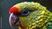 • The image features a close up of a colorful bird with vibrant yellow and green feathers covering most of its face and body