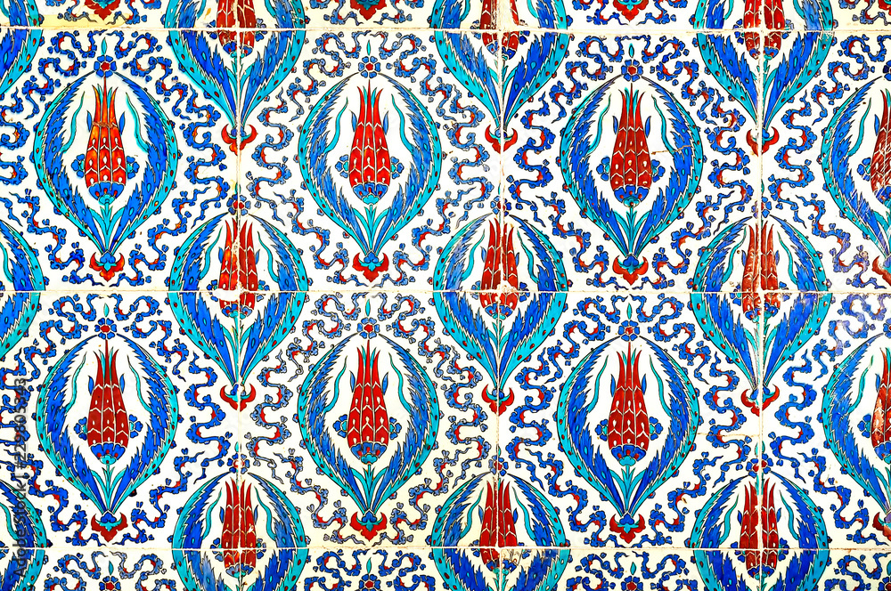 • 04.12.2010 ISTANBUL TURKEY Rüstem Paşa Mosque has the most beautiful and delicate examples of classical Iznik tiles dating back to 16th century.
