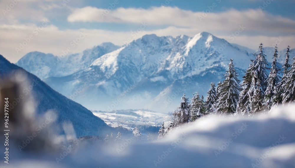 Plakat do Sypialni - Zimowy krajobraz tapeta fototapeta góry zimą #962977864