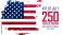 • 250 years of Independence greetings. United States 4th of July festive banner. American flag brush strokes background. Vector illustration.