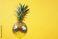 • A bright and colorful scene featuring a pineapple perched atop a shiny disco ball