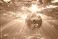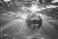 • A disco ball floating on the surface of a pool with sunlight reflecting off the water