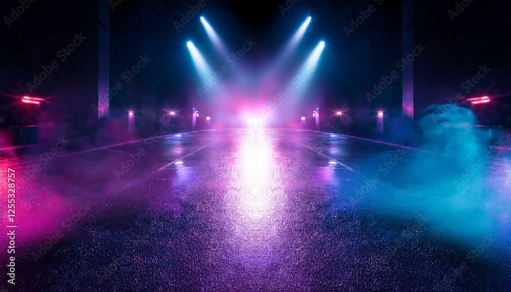 Plakat do Szkoły Tańca - reflection of neon lights a searchlight smoke #1255328757