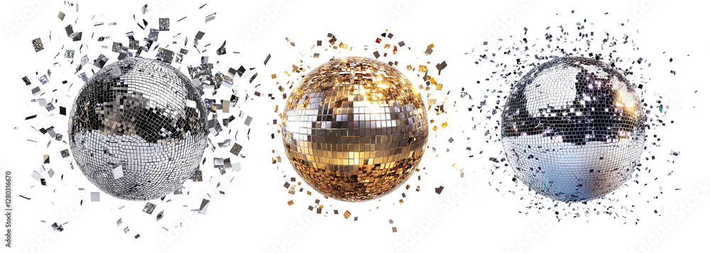 Plakat do Szkoły Tańca - Set of shiny disco balls with scattered mirror fragments, isolated on transparent cutout background #1280316670