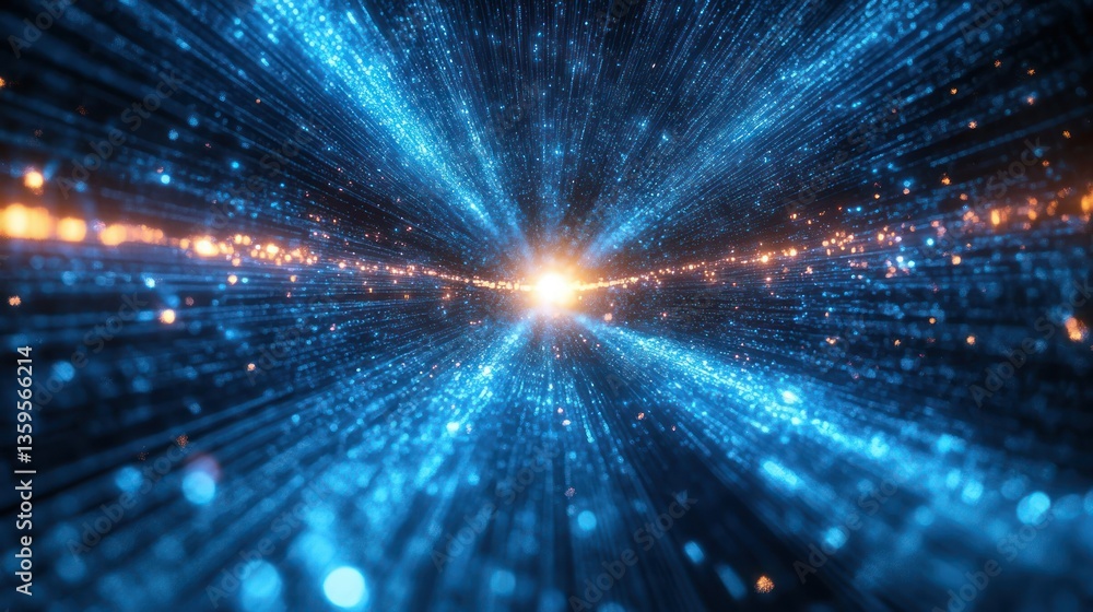 • Abstract Blue and Orange Light Tunnel: A Journey Through Digital Space
