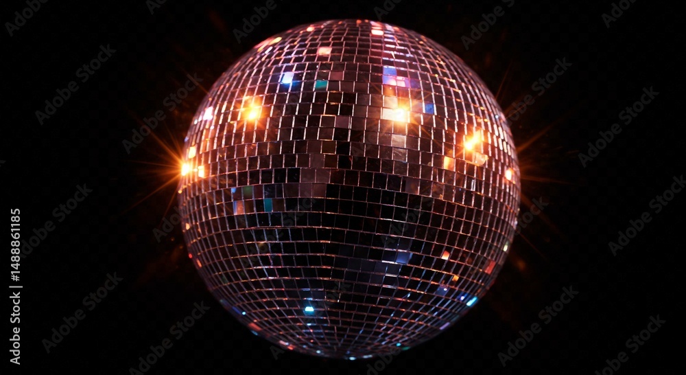 • Disco ball with mirror tiles isolated on a transparent background