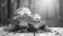 Plakat do Szkoły Tańca - Silver disco ball style mushrooms stand on a white wooden table top decorated with moss covered... #1543726233