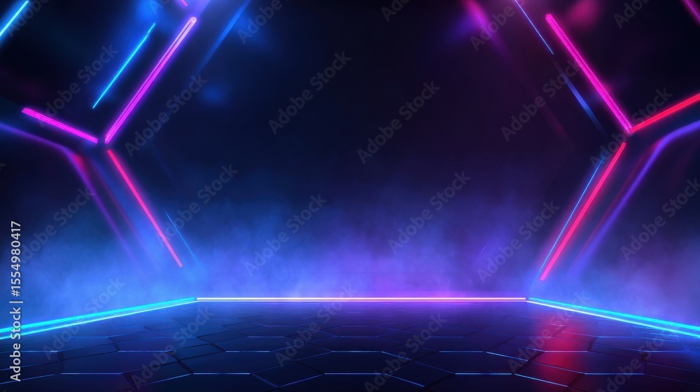 • Stunning photo of futuristic esport background for gaming live streaming. Esport game tournament competition neon banner.