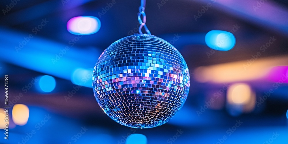 Plakat do Szkoły Tańca - vibrant blue disco ball in a nightclub with colorful lights #1566871281
