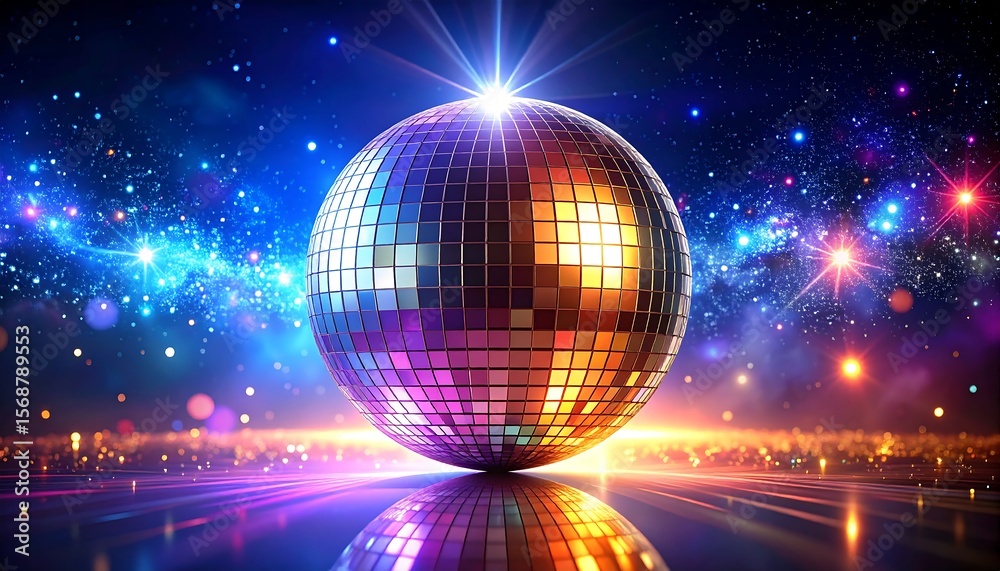 Plakat do Szkoły Tańca - Colorful disco ball in a starry night scene #1568789553