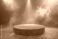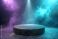 • Empty stage podium with dramatic purple and teal colored smoke and spotlights