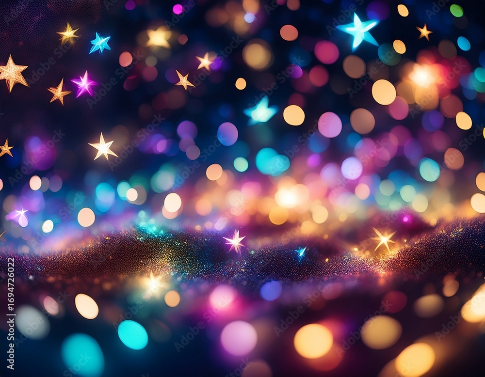 Plakat do Szkoły Tańca - a vibrant colorful bokeh effect with small bright lights that resemble stars against a dark... #1694726022