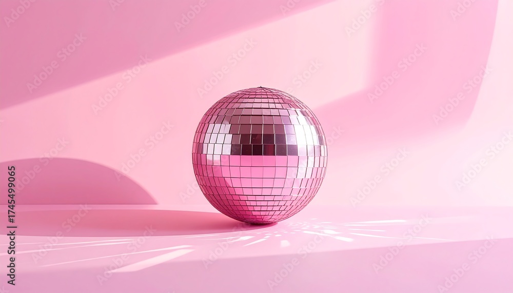 Plakat do Szkoły Tańca - A reflective, pink globe casting light in a minimalist, pink scene #1745499065
