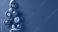 • Mood of festive blue and silver decor featuring Christmas tree shape, ribbon and glitter on a deep blue backdrop, capturing Christmas vibe and New Year celebration and warm greeting for the season