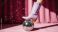 • Female in trendy purple cowboy boots on a disco ball. Retro party concept with vibrant pink decor. Western chic fashion statement for nightlife. Modern pop culture aesthetic