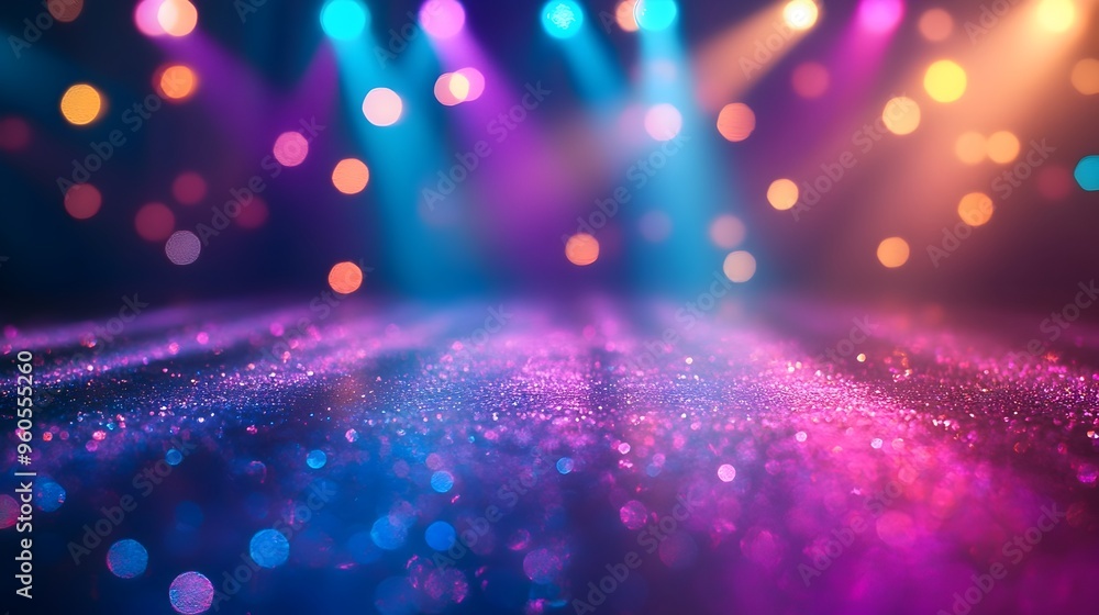 Plakat do Szkoły Tańca - Vibrant disco lights reflecting off a shiny surface creating a mesmerizing display of... #960555260