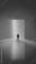 • Vivid artwork. Man facing glowing rainbow panel in wide minimal hall. Concept of futuristic digital environment, tech backgrounds, modern spaces, and immersive visual experience