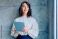 • Experienced professional woman with grey hair holding a digital tablet. She is smiling, looking hopeful for the future