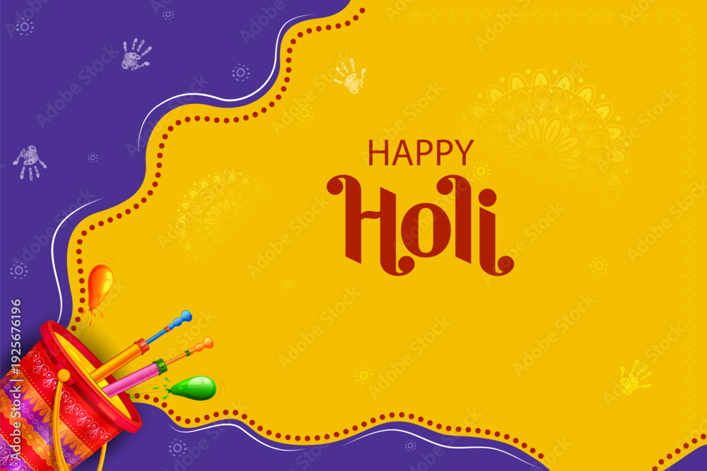 • Colorful splash for Happy Holi background card design for color festival of India celebration greetings for promotion and advertisement banner