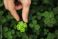 • Holding a good luck four leaf clover standing out from meadow of green clovers. Unique discovery of a rare 4 leaf clover for St Patricks day charm or to symbolize luck, good fortune, or prosperity.