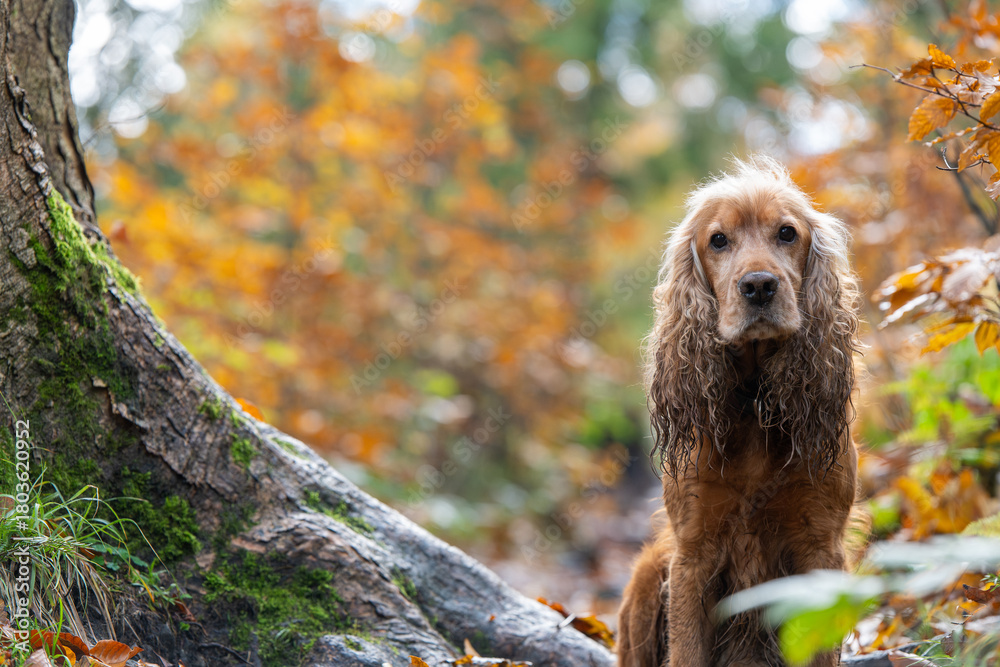 Do Przedszkola - Portret cockera spaniela w jesiennym lesie #1803620952