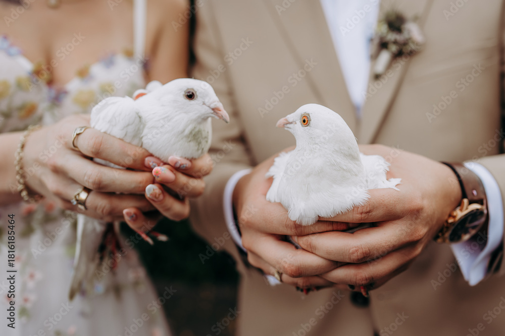Do Przedszkola - Para młoda trzyma w dłoniach dwa gołębie #1816185464