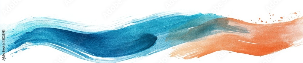Panel Szklany do Kuchni - Abstract blue and orange watercolor wave. #1181025981