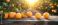 Ripe oranges arranged neatly on a rustic wooden table in the middle of a sunkissed orange orchard
