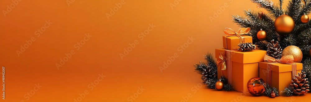 Minimalist Orange Christmas Banner with Gifts