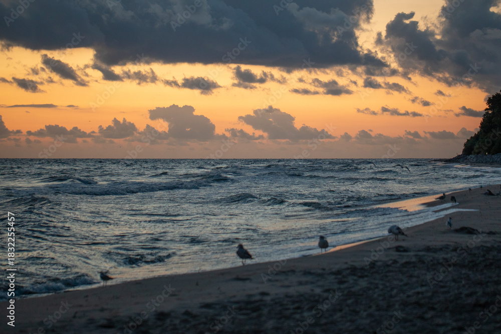 Obrazy Zachód słońca - Zachód słońca z widokiem na polskie Morze Bałtyckie. Morze Bałtyckie. #1832255457