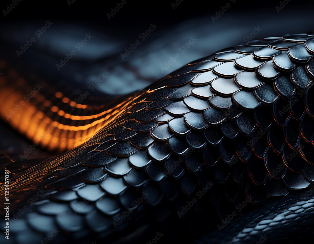 Fototapeta Trendy - Skóra węża łuski czarne tło #1125437091