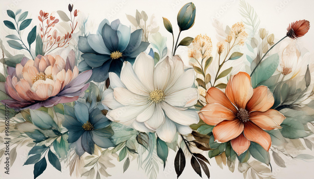 Fototapety Trendy - Piękne akwarelowe kwiatowe tło, tapeta generative ai #966268397
