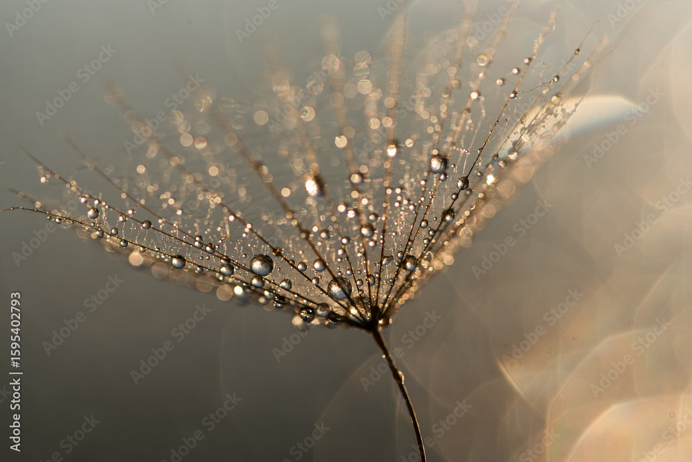 Obrazy Dmuchawce - Złote dmuchawce w kroplach wody, abstrakcyjne tło kwiatowe. #1595402793
