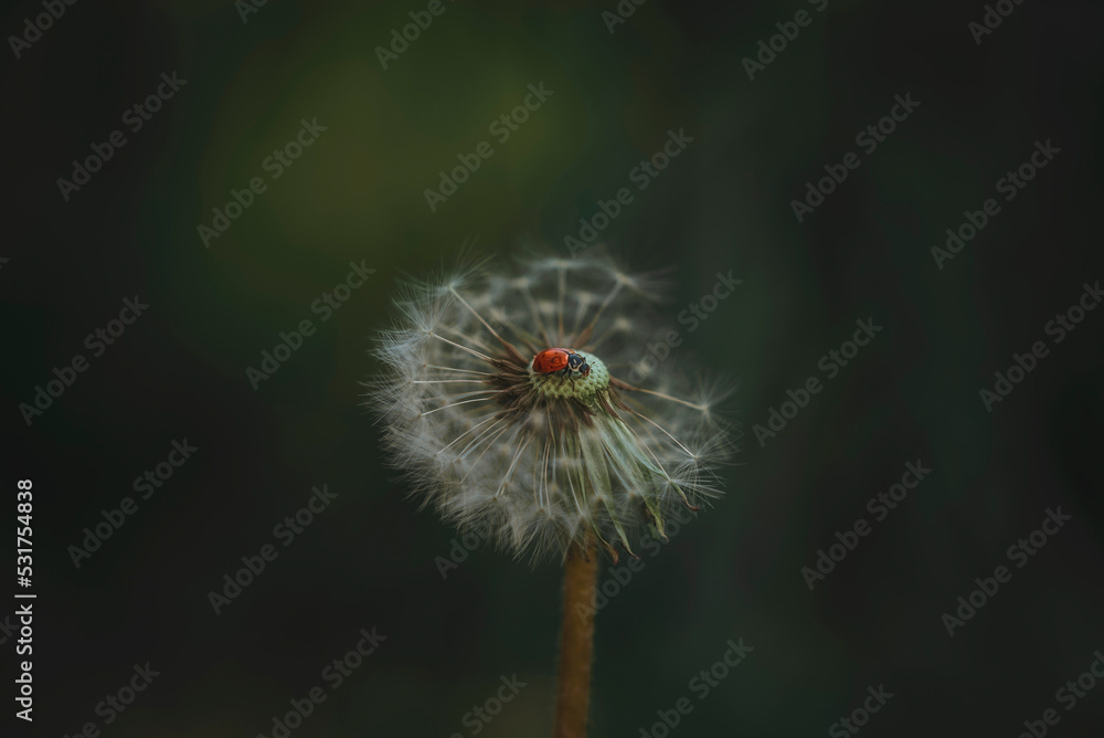 Obrazy Dmuchawce - mariquita sobre diente de león. #531754838